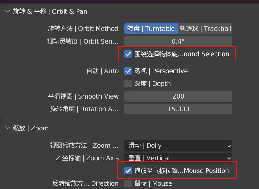 shift + 中键` 视图平移中键 + 鼠标移动 视图旋转,如果不设置围绕选择物体旋转,旋转中心点是世界原点(0,0,0)