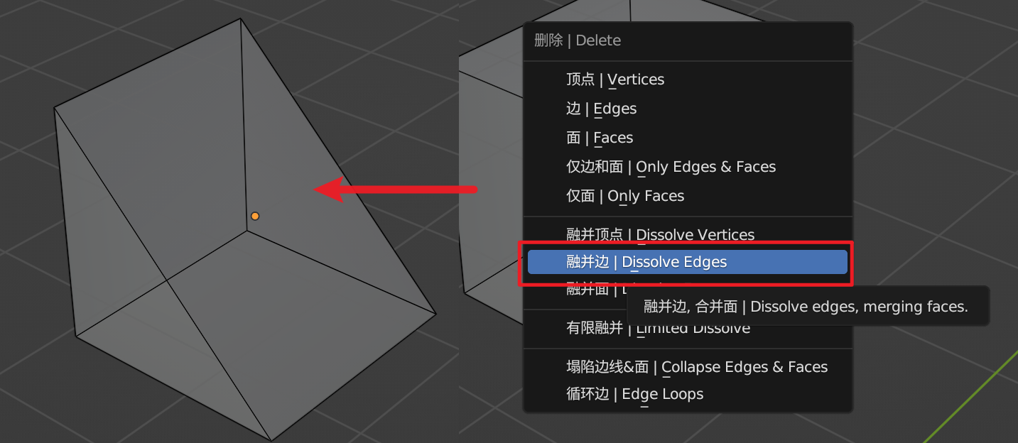 删除中的融并边:将删除后剩下的顶点和边自动缝合